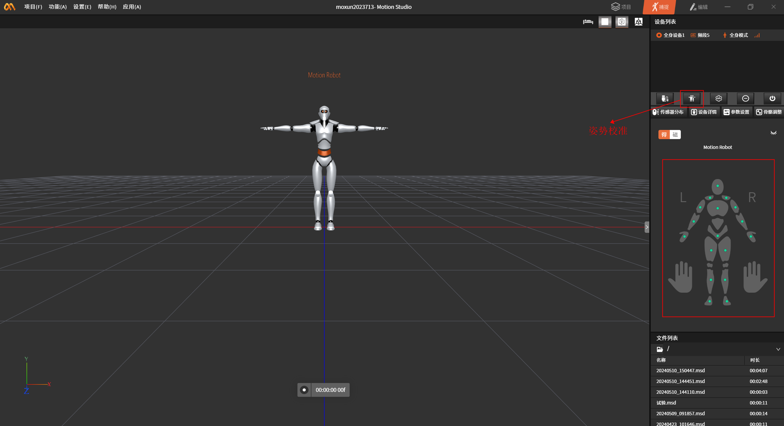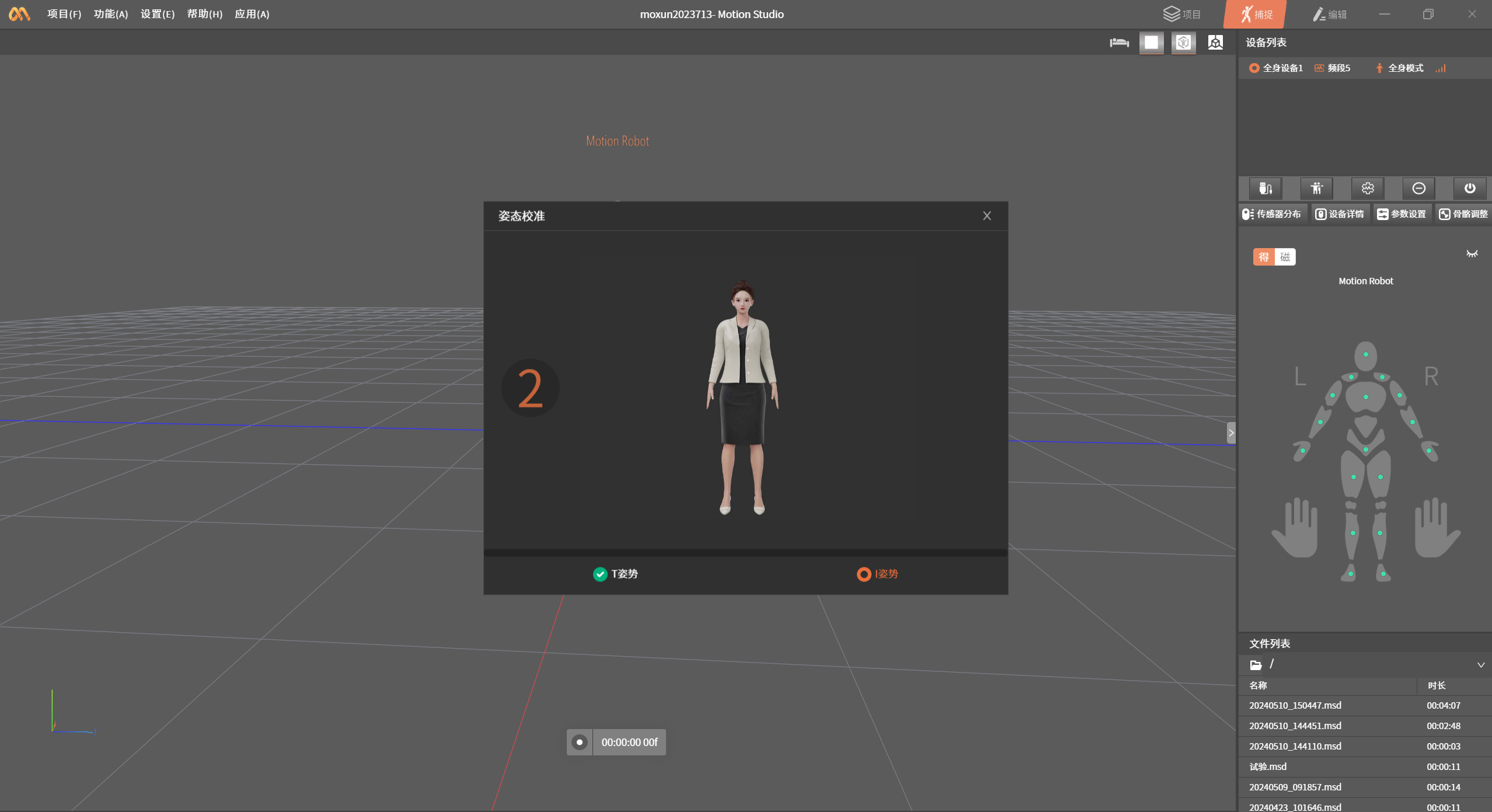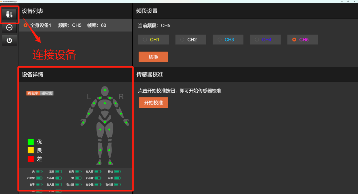 设备连接成功后,点击姿势校准,根据提示进行T-Pose、A-Pose姿势校准
