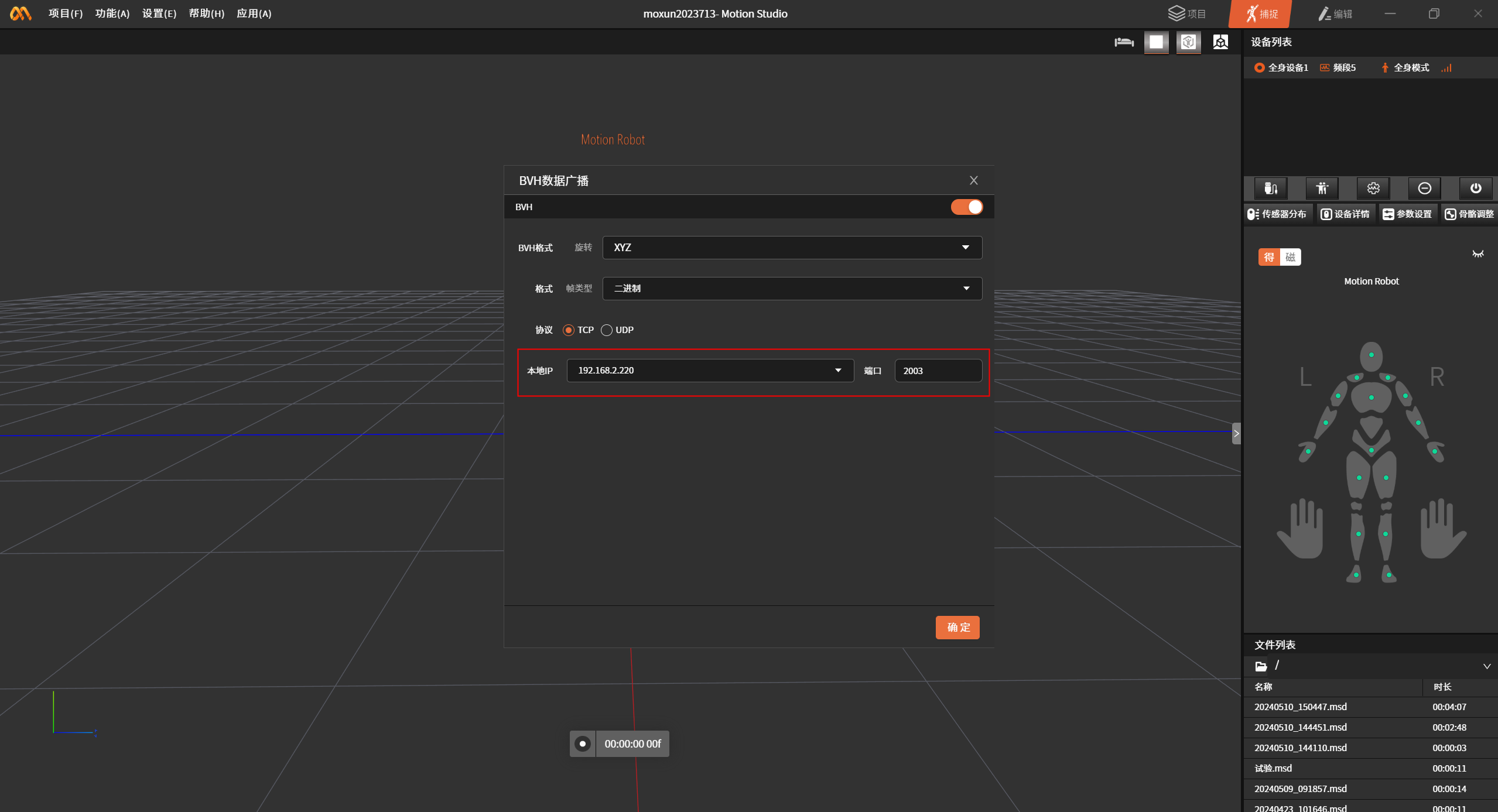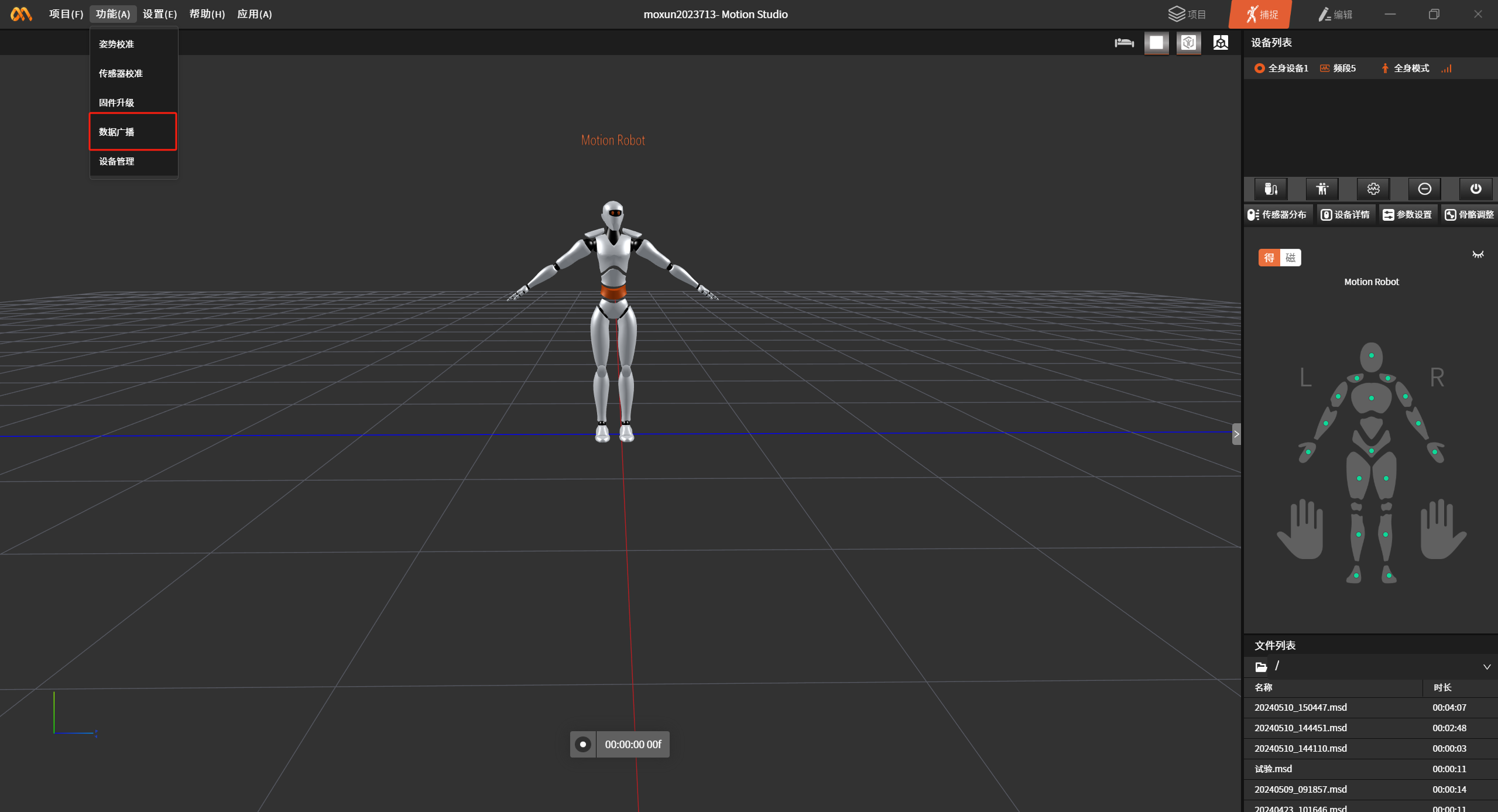 数据广播功能可以将Motion Studio中的数据实时的广播到Motion Studio软件所在的网络中,网络对应的任何其他软件都可以通过Api接口开接收和解析实时的数据。