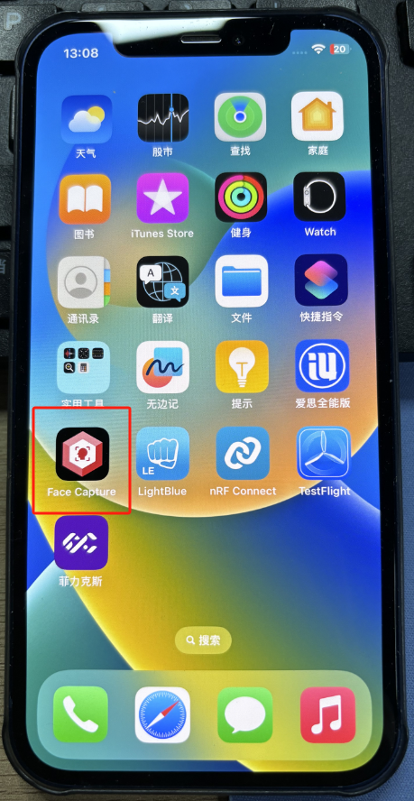 在苹果手机应用商店中下载Face Capture软件,同时要确保手机和电脑需用同一WiFi或者流量