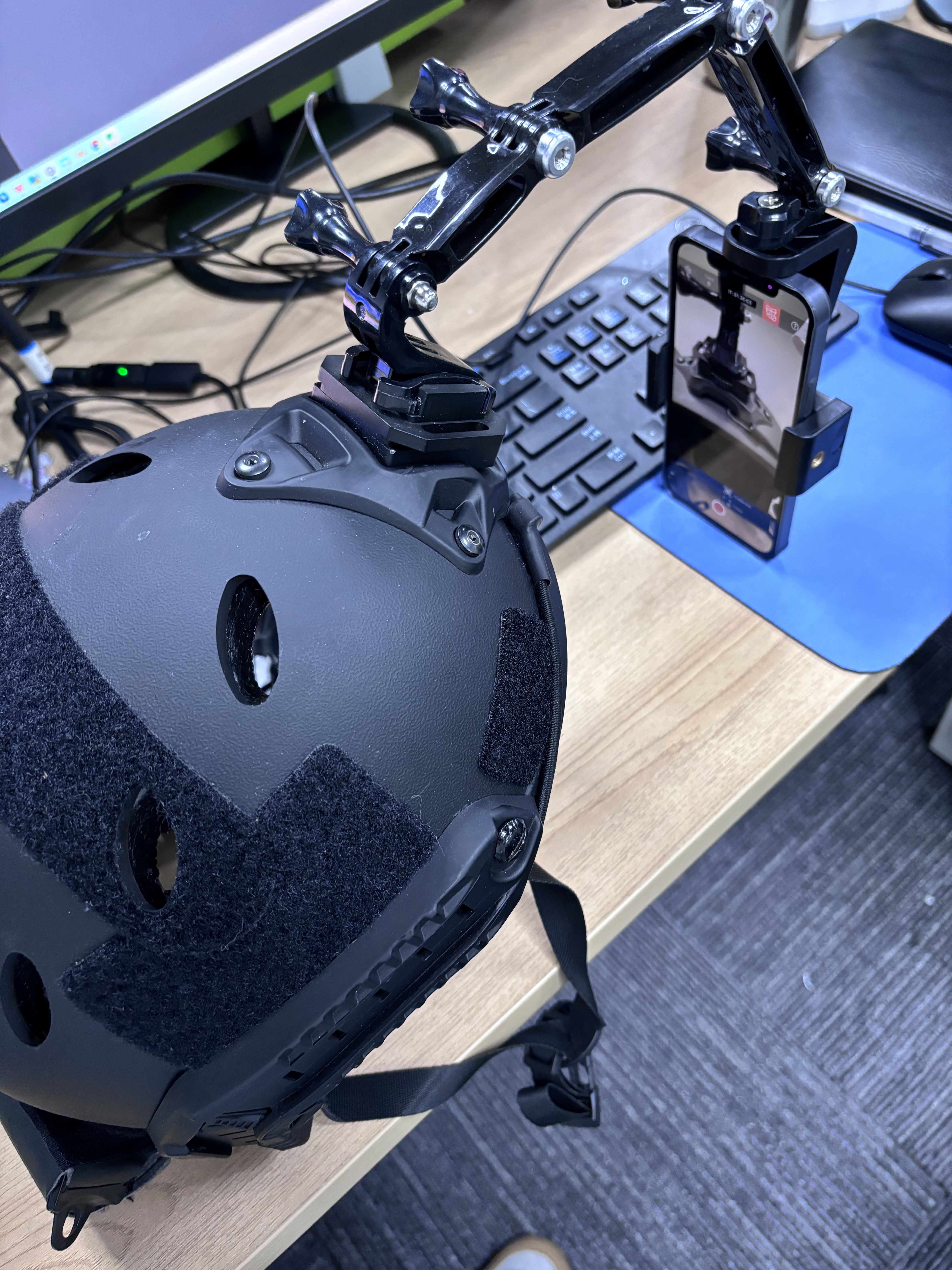 连接完成后,将手机固定在头盔上,佩戴头盔,即可开始进行虚拟直播