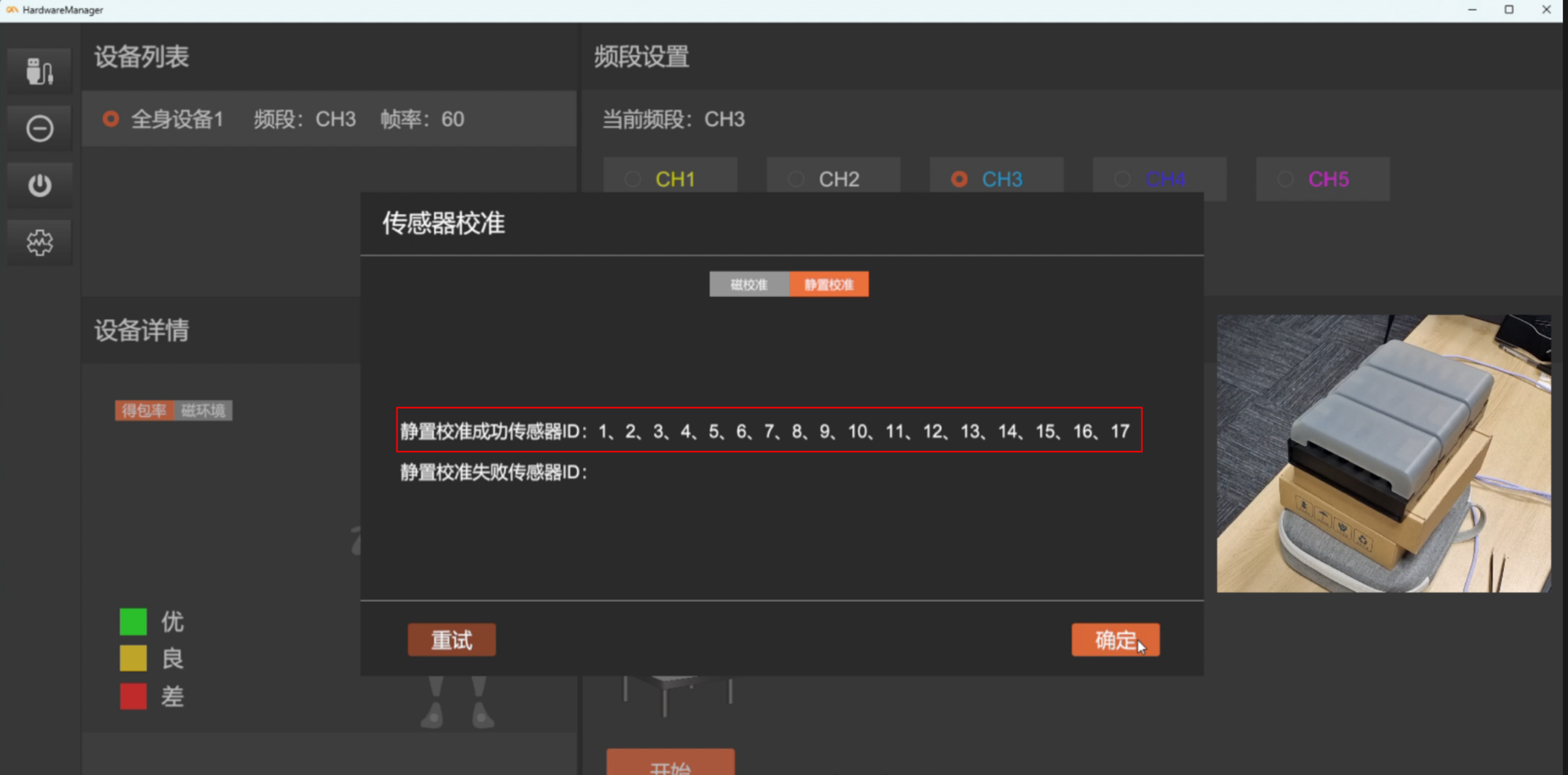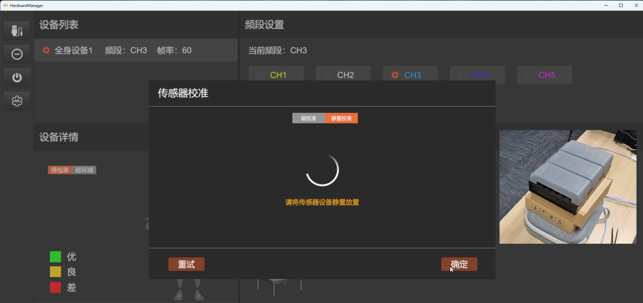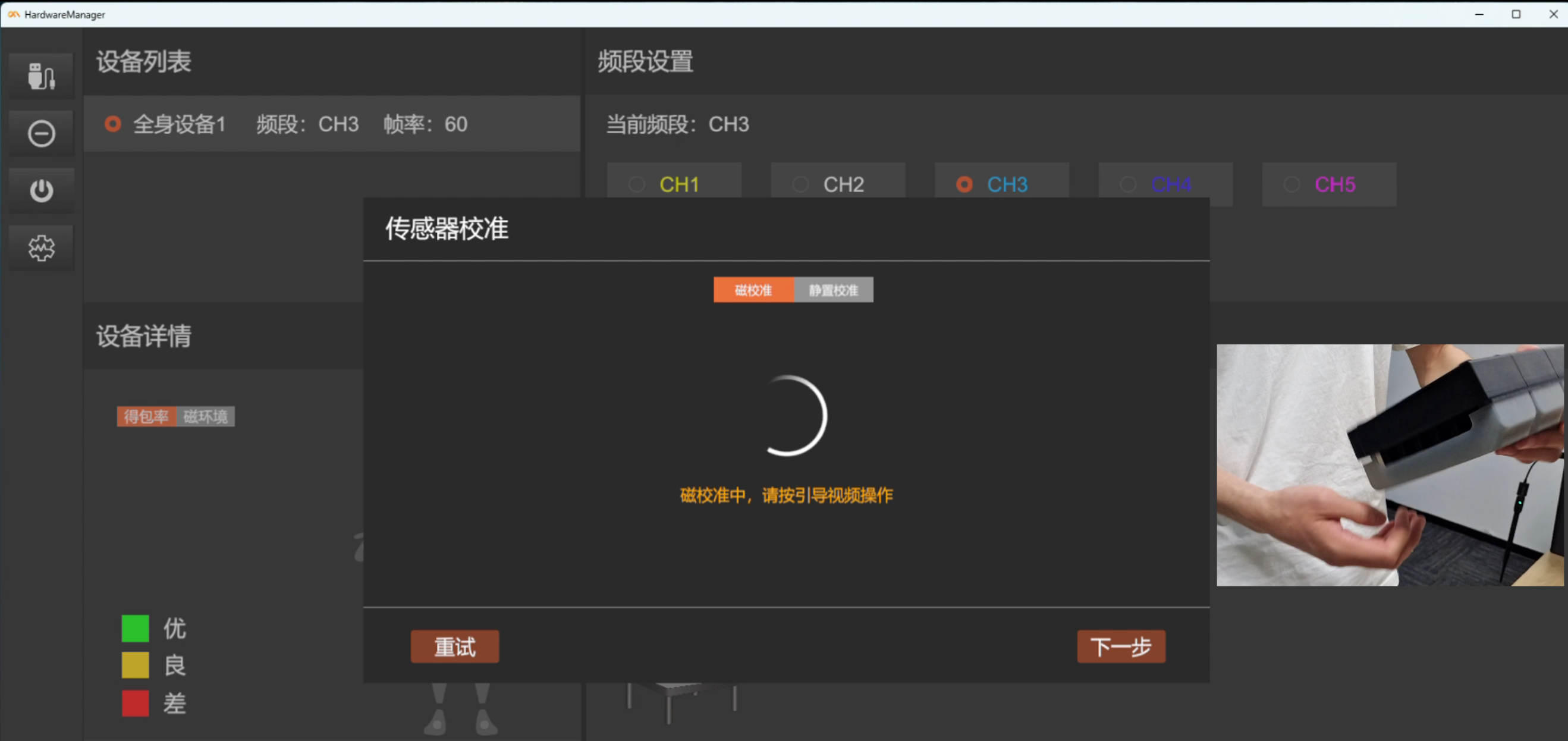 点击下一步前,需确保传感器静止放置,以保证传感器能够校准成功