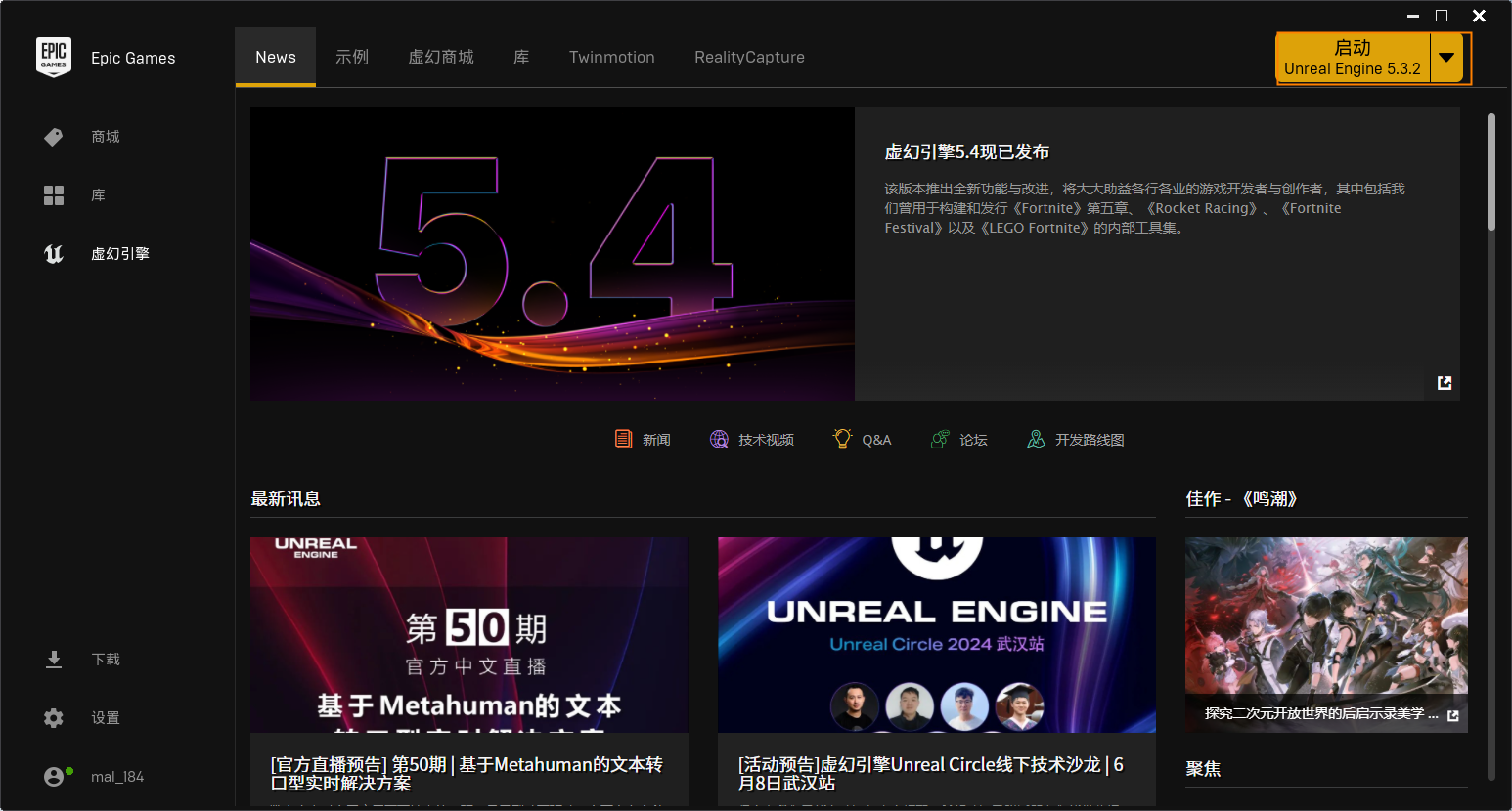 1、先下载Epic Games虚幻引擎,在Epic中找到UE引擎下载,安装引擎时需注意不要勾选引擎源代码选项