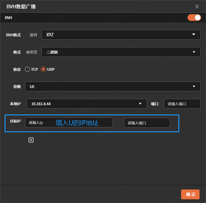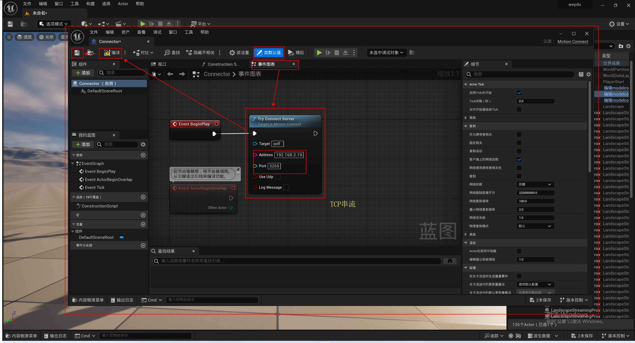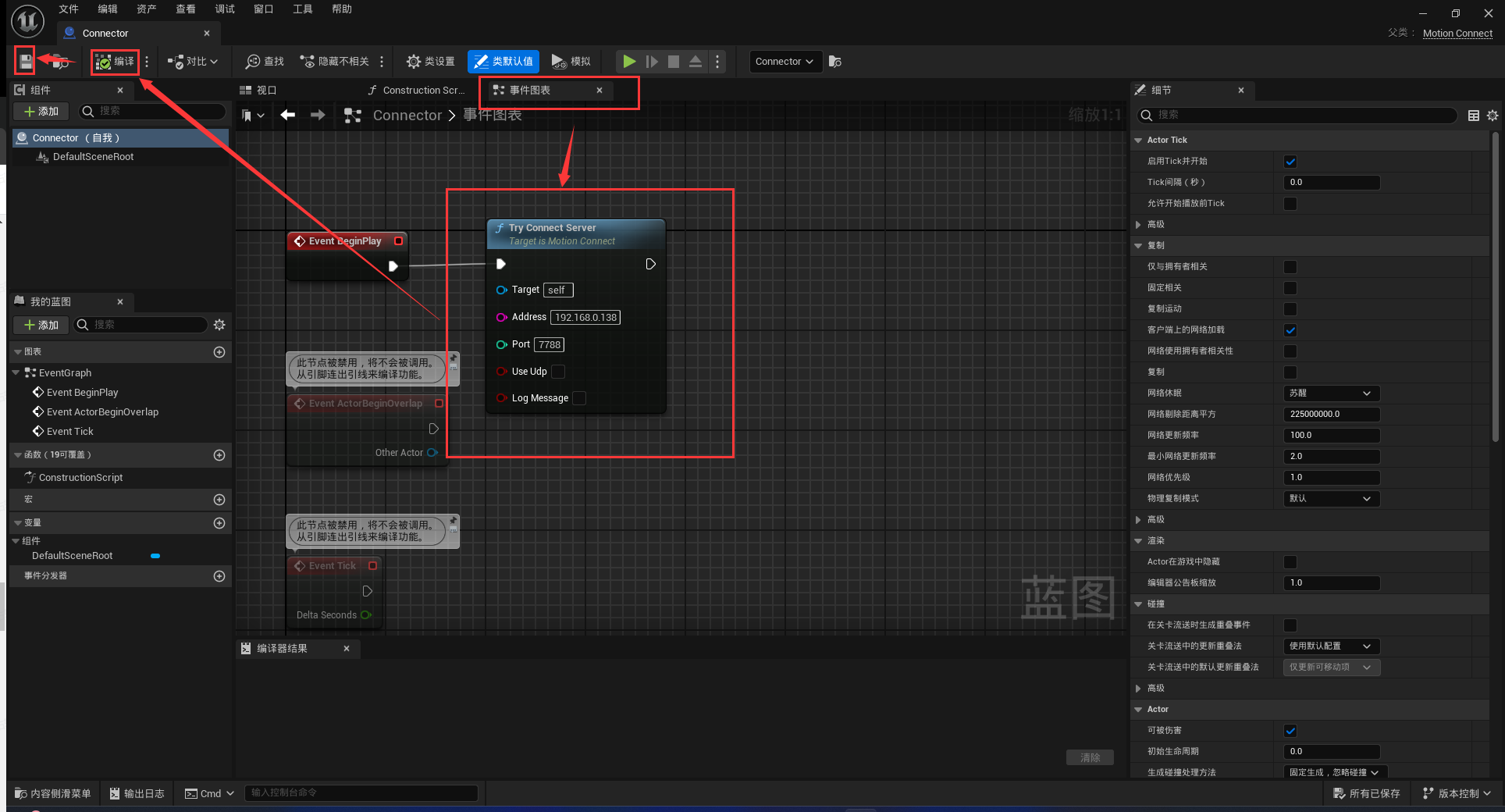 将Motion Studio中设置的IP和Port填入蓝图节点中,并根据MS串流设置决定是否勾选Use Udp(勾选时为使用UDP传输),设置完毕后点击编译、保存