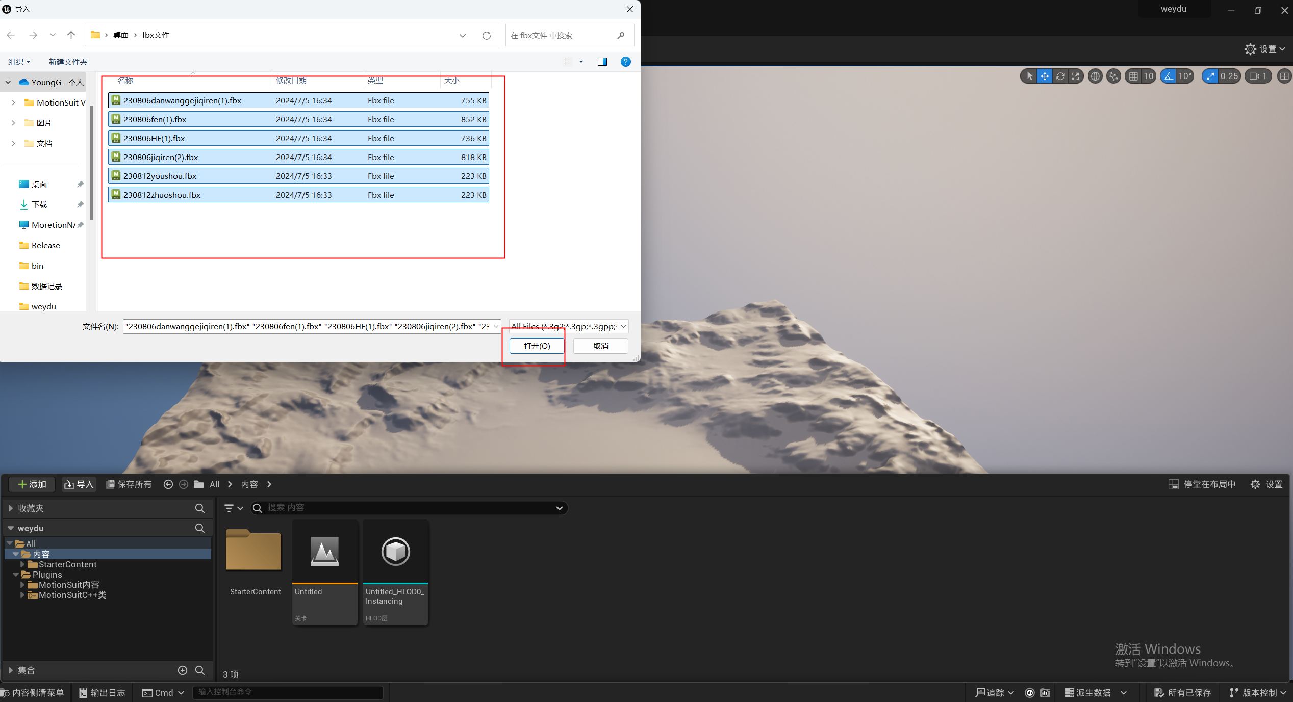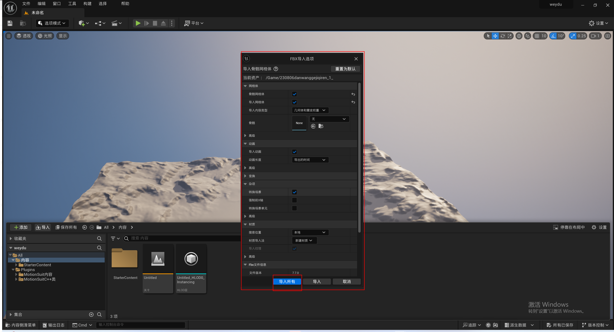 导入成功后,内容浏览器会显示导入的模型(最好导入内容文件夹中),然后点击保存所有
