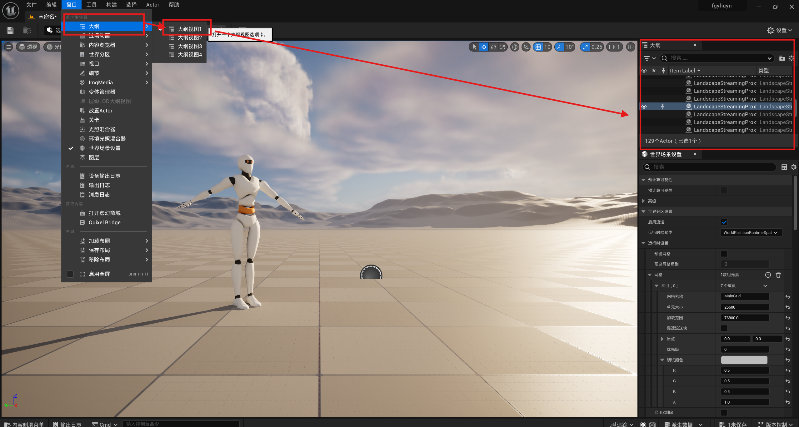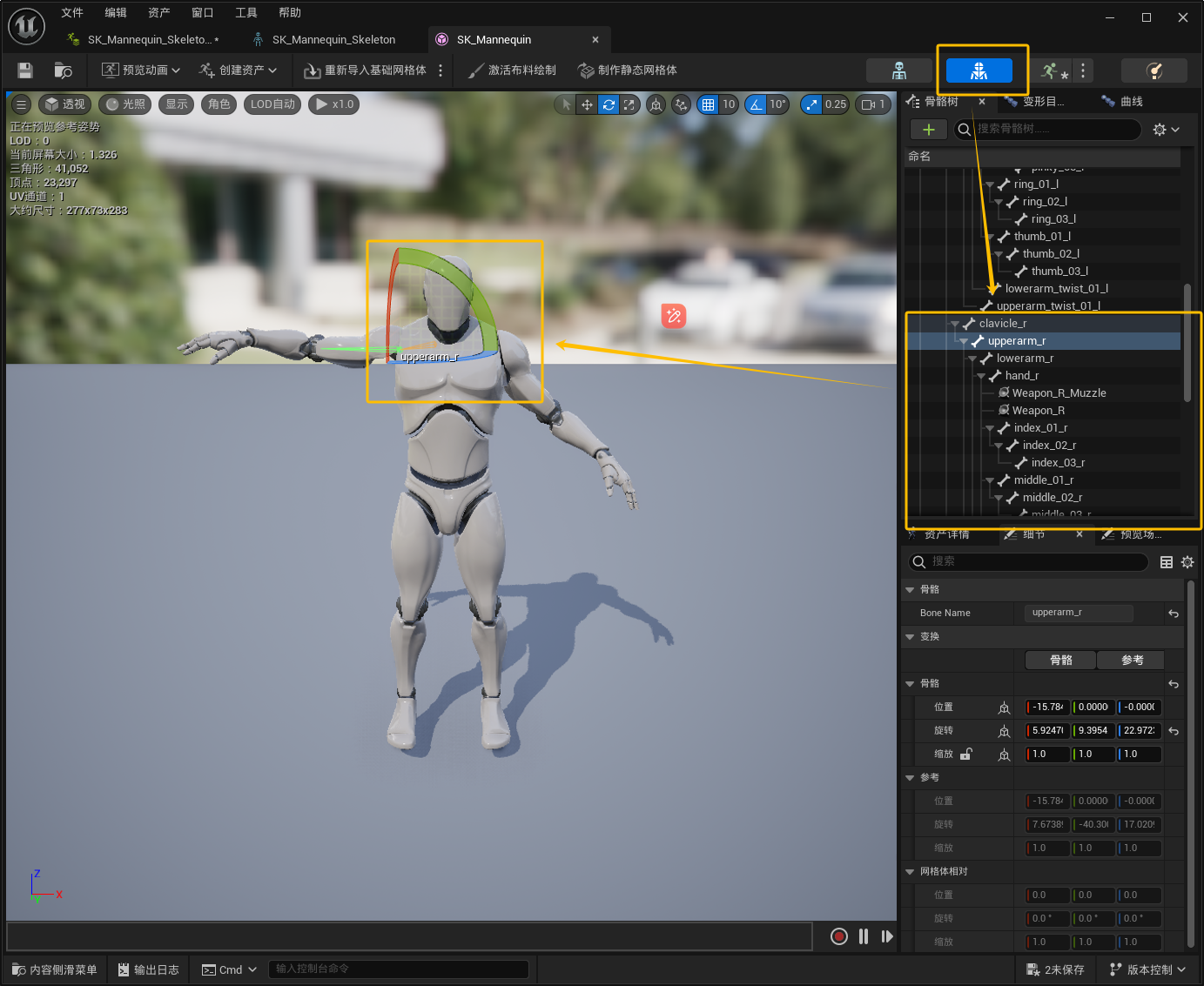 以Unreal引擎标准小白人为例,该模型的初始姿态为A-Pose
