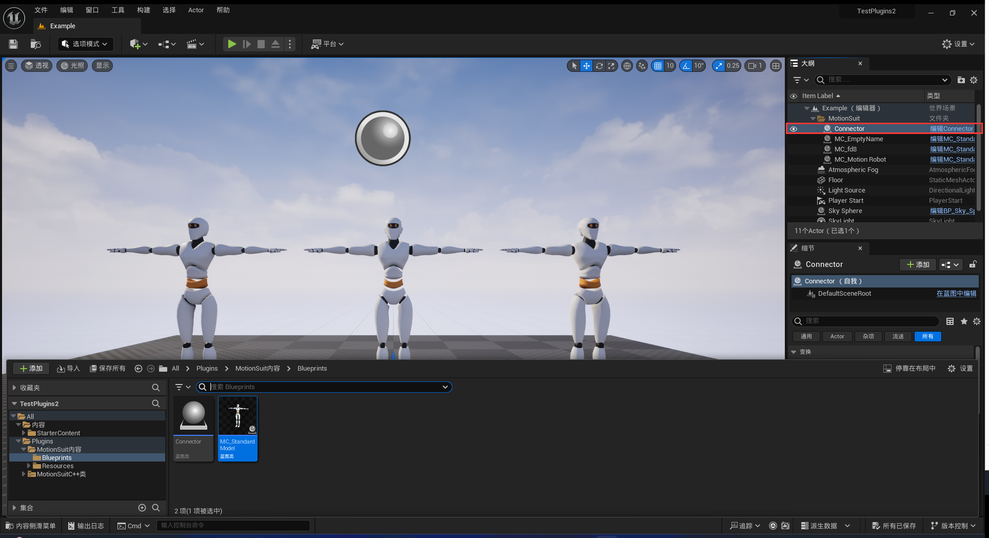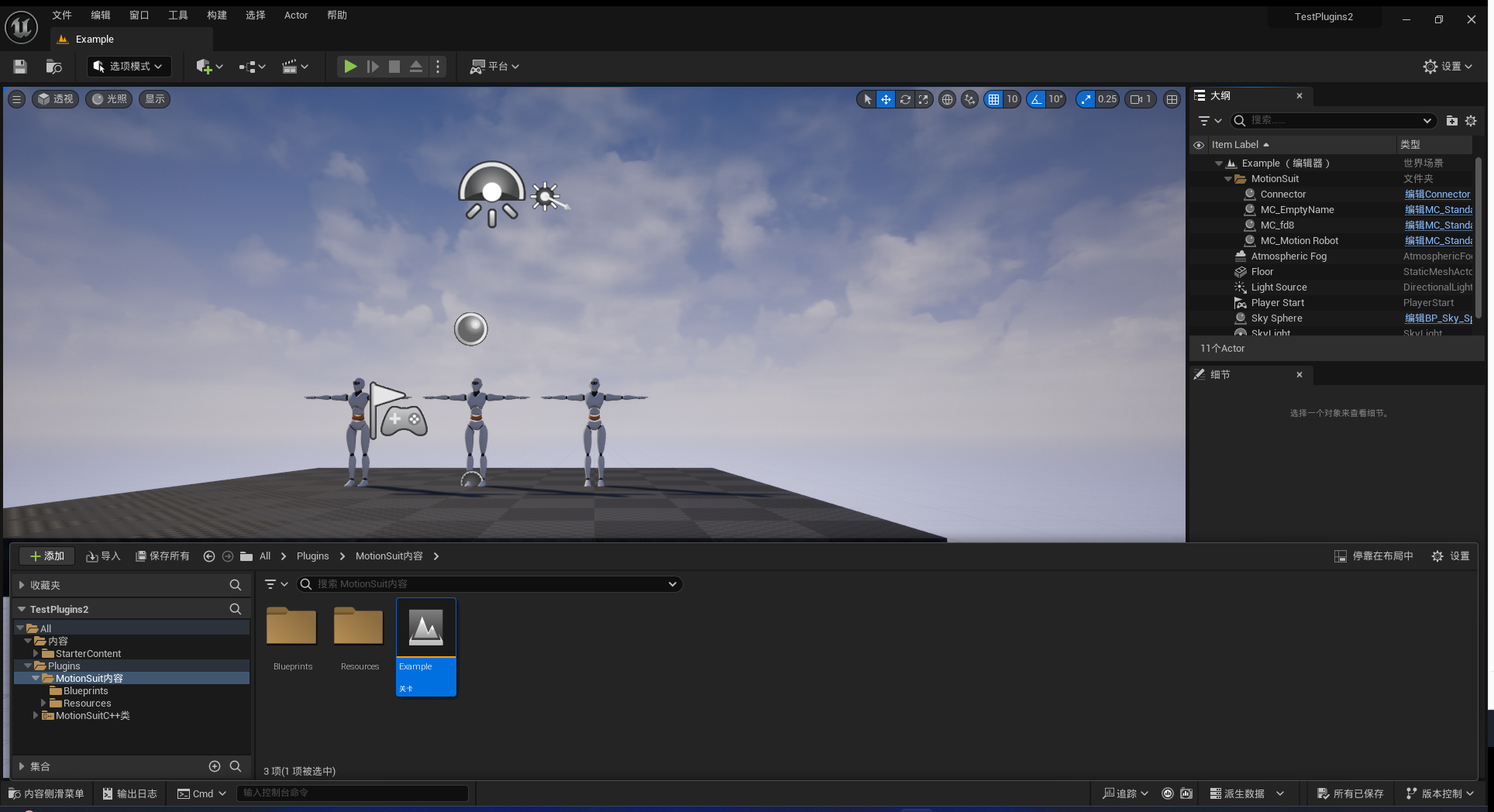 插件基于UE5.3引擎编写,插件中以Example为示列场景(以Unreal版本为列,高版本操作基本相同)