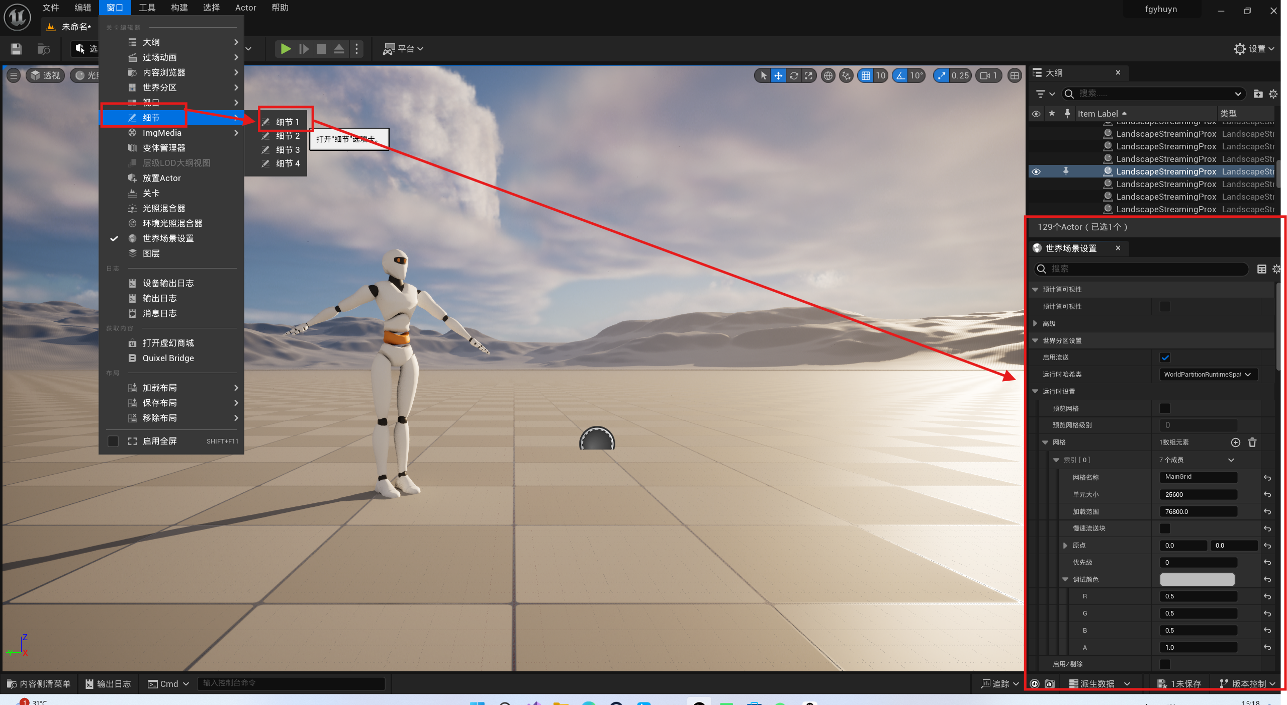 1、若右侧大纲、细节被关闭,点击窗口,找到大纲按钮,选择大纲视图1,细节窗口看下图