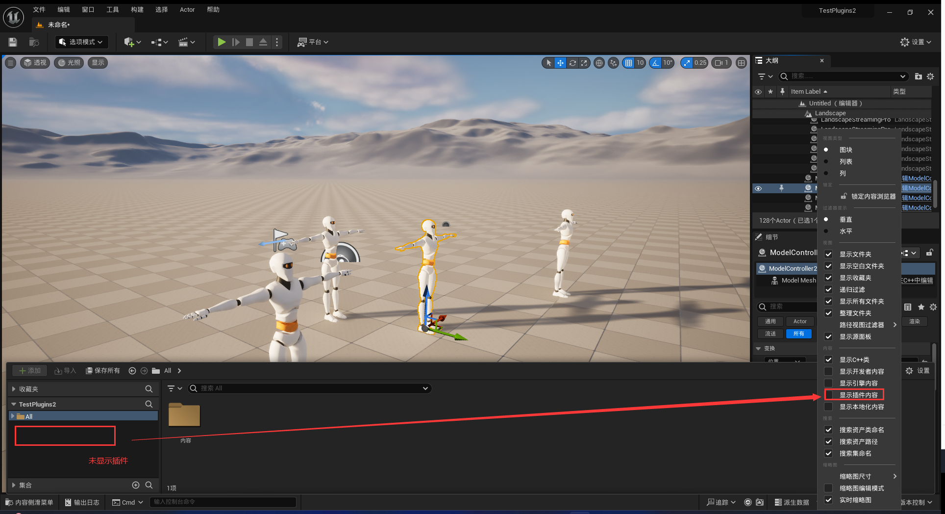 6、在引擎下方的内容测滑菜单可以看到插件内容(注意不要把右侧大纲页面关掉)